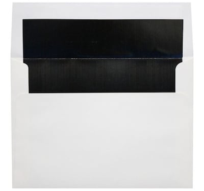 LUX® Size A2 envelope in white with black lux lining measuring 4 3/8" x 5 3/4" has a basis weight of 60 lbs and is best suited for homemade greeting or holiday cards and is sold as 50 per pack.