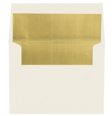 LUX® Size A2 envelope in natural color with gold lux lining measuring 4 3/8" x 5 3/4" has a basis weight of 70 lbs and is best suited for homemade greeting or holiday cards and is sold as 50 per pack.