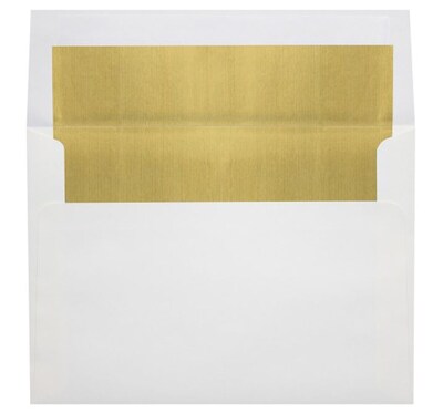 LUX® Size A9 envelope in white with gold lux lining color measuring 5 3/4" x 8 3/4" has 60 lbs basis weight and is sold as 50 per pack.