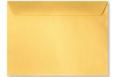 LUX™ Booklet smooth envelope in gold metallic color has a rectangular flap on the long side for easy filling. Envelope measuring 6" x 9" is ideal for holding like pamphlets/brochures/booklets, sold as 50 per pack.