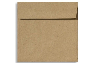 LUX® Square envelope in grocery bag color measuring 5 1/2" x 5 1/2" features an elegant square flap with a peel and a press for sealing. Envelope of paper weight 70 lbs is laser/inkjet compatible, sold as 1000 per box.