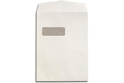 LUX Bright white open end window envelope features a moistenable glue flap for convenient filling and safety. 9" x 12" Envelope has a window measuring 1 1/2" x 4" at centre and is suitable for sending letters and is sold as 50 per box. When sending letters, invoices or statements, save the time and expense of separately addressing envelopes. Simply position the address to show through the window, or choose our full-face windows, which are large enough to show off the entire contents. Available in a variety of styles and colors, printed or plain.