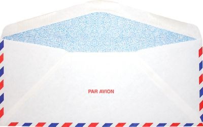 The #10 Envelope (4 1/8" x 9 1/2") in 20 lb. Airmail with Security Tint is a lightweight yet durable envelope, perfect for airmail letters, invoices, or cards. Seal by moistenable glue along flap. Available either plain or printed.