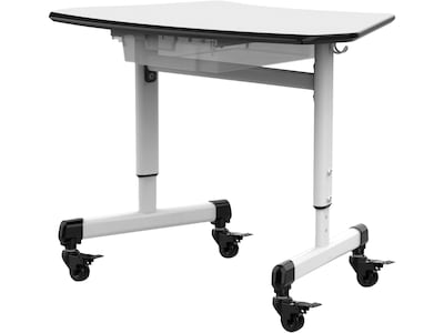 Luxor 29"W Height-Adjustable Trapezoid Student Desk with Drawer, White/Black (MBS-DESK)