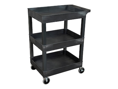 Luxor 3-Shelf Plastic/Poly Mobile Utility Cart with Swivel Wheels, Black (SEC111-B)