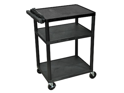 Luxor 3-Shelf Plastic/Poly Mobile A/V Cart with Lockable Wheels, Black (LP34E-B)