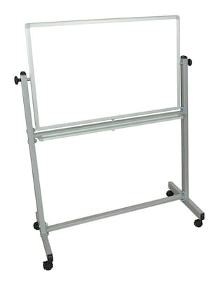36" x 24" whiteboard features magnetic surfaces on both sides and 4 casters for easy mobility.