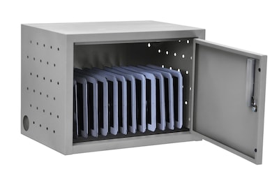 This Luxor LLTMW12-G charging box is capable of holding and charging up to 12 tablets or chromebooks. Shipped fully assembled, this box features two ventilated sides for letting air to circulate freely in and out of the unit.