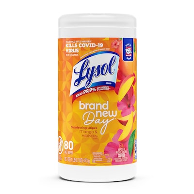 Lysol Brand New Day Disinfecting Wipes, Mango & Hibiscus Scent, 80 Wipes/Canister (001920097181)