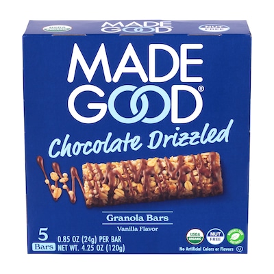 Madegood Gluten Free Chocolate Drizzled Vanilla Granola Bars, 0.85 oz., 5/Box, 6 Boxes/Pack (307-00427)