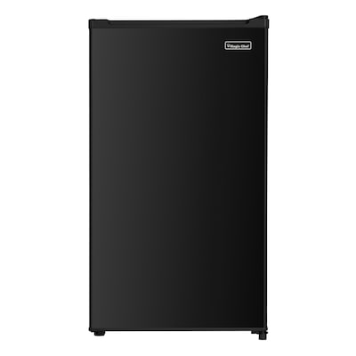 An ideal appliance for offices and dorm rooms, the Black Magic Chef 3.2-Cu. Ft. Mini Fridge's compact size allows it to fit into small spaces and out of the way nooks and crannies. This refrigerator is freezer-free and features an adjustable thermostat control, meaning that you have complete control over the temperature and freshness of your food. Adjustable glass shelves help maximize space and in-door storage options are ideal for condiments, bottles, beverages, and jars, plus there's even a spot for a 2-liter bottle. The crisper drawer is ideal for your fruits and vegetables. A reversible door allows you to place the unit according to your space requirements and leveling legs make sure it is balanced. This mini fridge is ENERGY STAR Certified and offers a 1-year parts and labor warranty and 5-year compressor part warranty. This easy-to-use, convenient small refrigerator will quickly become a staple in your home or office!