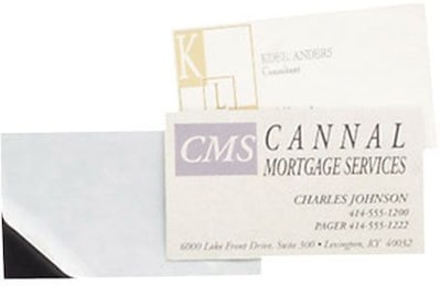 - Business card applies easily by removing paper covering of adhesive side