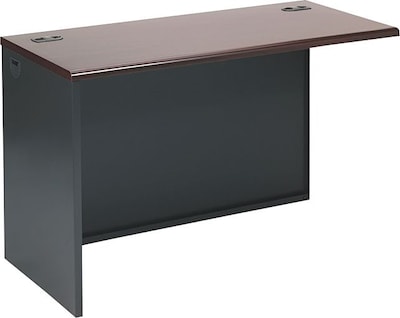 HON® 38000 Series Left return in mahogany/charcoal finish measures 29 1/2" X 48" X 24" and has a steel reinforced work surface.