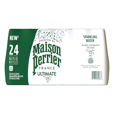 One pack of twenty-four 16.9 fl oz bottles of Maison Perrier Sparkling Water with natural electrolytes for taste