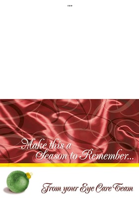 Make this a season to remember from your eye care team - 7 x 10 scored for folding to 7 x 5, 25 cards w/A7 envelopes per set