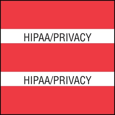Double bands of Red and "HIPAA/PRIVACY" title appear on both sides Double bands of Red and "HIPAA/PRIVACY" title appear on both sides. Scored for easy application. Permanent adhesive backing with laminated mylar coating. Use with Dividers 20256 and 20257. 102 tabs per package. Size: 1-1/2-in. x 1-1/2-in. (before folding).