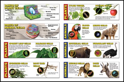 The eight strips in this mini bulletin board set illustrate the fundamentals of animal and plant cells, including cell models and functions of specific types of cells in plants and animals.