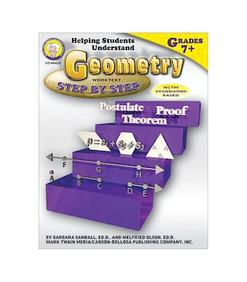Mark Twain "Helping Students Understand: Geometry" Resource book for grades 7 or above features coordinates, angles, patterns and reasoning, triangles, circles and more. Book with 128 pages offers examples with real life applications.