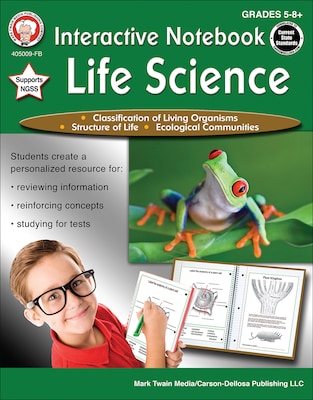 The Mark Twain Interactive Notebook: Life Science for grades 5–8 allows students to create their own subject-specific resource that can be referenced throughout the year. This interactive notebook includes lessons in ecological communities, classification of living organisms, and structure of life.