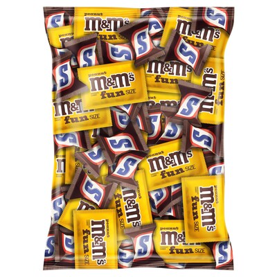 - Contains one (1) 60-ounce bulk bag filled with M&Ms Peanut and Snickers Minis.