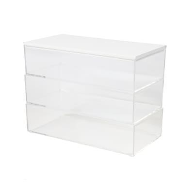 Deflect-O Cube 2 Compartment Stackable Plastic Storage Drawers, Clear (350101)