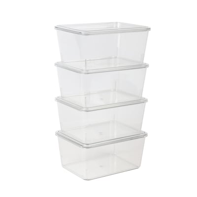 - Set of 4 stackable storage bins with lids, 6.75" x 5"