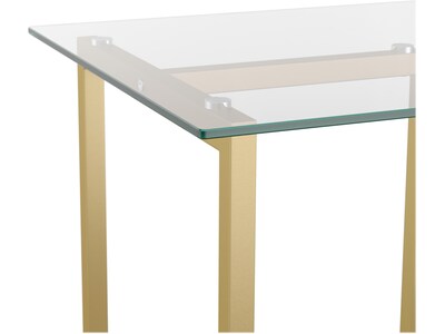- Comes in modern style, featuring a 0.31" clear tempered glass desktop and powder-coated steel frame in a polished brass finish