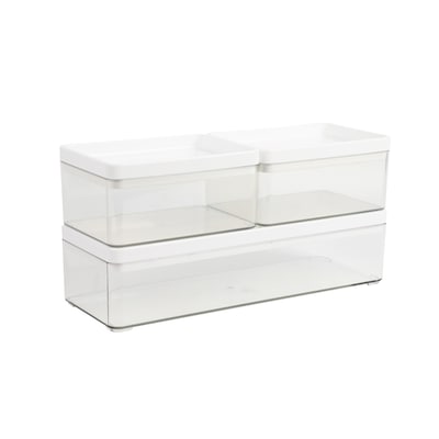 Martha Stewart Grady Plastic Stackable Storage Organizer with White Plastic Lid, Clear, 3/Set (GSBA13603PCLWH)