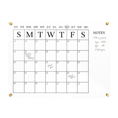 Be organized and stylish with this "floating" wall mounted acrylic monthly calendar with notes section.