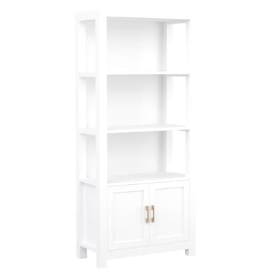 Martha Stewart Hutton 68" 4-Shelf Shaker Style Bookcase w/ Cabinet, White Engineered Wood/Polished Brass Hardware (ZG053WHGLD)