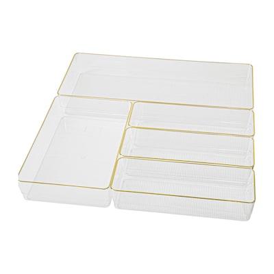 Martha Stewart Kerry Plastic Stackable Office Desk Drawer Organizer, Various Sizes, Clear/Gold, 5/Set (BEPB9085G5CGD)