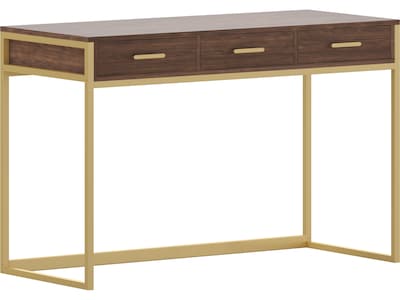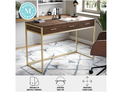 Martha Stewart Ollie 47"W Home Office Desk with 3 Drawers, Walnut/Polished Brass (ZGZP028BRGLD)