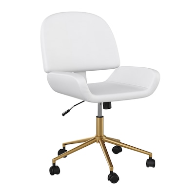 Martha Stewart Tyla Armless Faux Leather Swivel Office Chair, White/Polished Brass (CH2209215WHGLD)