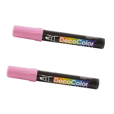 Marvy Uchida® Bubble gum Pink Chisel Tip Acrylic Paint Marker is ideal for adding a touch of bright pink to signs, banners, and windows without the mess that comes slang with paint brushes, pallets, and tubes of paint! This marker measures 5.5 inches in length and features a chisel tip. This tip allows for precise and exquisite lines as you draw and write messages. To use this marker, simple shake it and press the tip down firmly into your writing surface and you write or draw. Use this marker to create beautiful greeting cards, event banners, sings, window decorations, DIY projects and more! Size: 5.5in , Color: Bubblegum Pink , Quantity: 2 markers