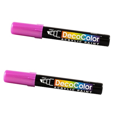 Marvy Uchida® Metallic Violet Red Chisel Tip Chalk Markers help you create intricate paint designs with vibrant color. Do you have an art or DIY project coming up that requires a bright burst of violet red color? Marvy Uchida® Metallic Violet Red Chisel Tip Acrylic Paint Marker is just what you need! This paint marker is sold in 2 packs and measures 5.5 inches in length. Perfect for instances in which you want to use acrylic paint without the mess of brushes and pallets, this marker features a chisel shaped tip that allows you to create precise and carefully styled lines. To use this marker, shake it for several seconds and then push the tip down firmly onto a flat, non-porous surface while drawing or writing. Create beautiful and clear violet red words and images with ease! Size: 5.5in , Color: Violet Red , Quantity: 2 markers