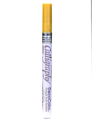 This marker features a flat 2 mm nib which allows you to produce beautiful lettering. Its oil based formula results in a gloss finish on any non-porous surface. Great for light or dark paper, glass, wood, porcelain, metal, mirrors, or fabric. Acid-free and non-toxic.