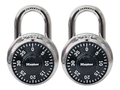 Keep valuable items and sensitive paperwork secure with this pack of two Master Lock stainless steel black dial combination locks.