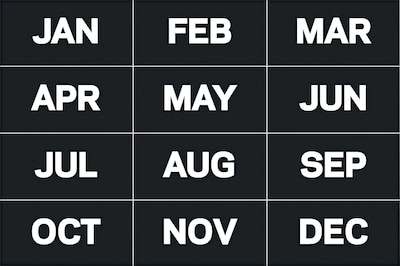 • Months and dates are 1"x2" and the number days are 1"x1".