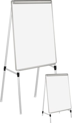 Ensure instructions, guidelines and other notes are highly visible with this presentation easel. The lightweight and foldable design is ideal for packing up and bringing on the go, while the durable four-leg construction offers enhanced sturdiness and support. This MasterVision Silver Easy Clean dry-erase presentation easel features telescoping legs, so you can easily use this display on the floor or a tabletop.
