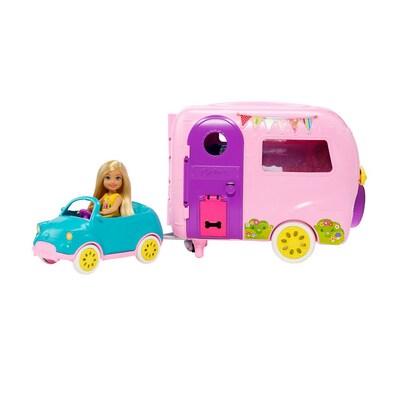 - ?Kids can go camping anytime with the Club Chelsea camper doll and playset that offers transformation and lots of toy pieces, including a puppy, to inspire imaginations!