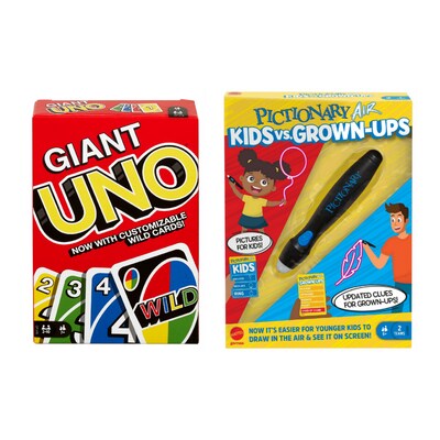 The exciting Mattel Game Set, ?Giant UNO Family Card Game and Pictionary Air Kids