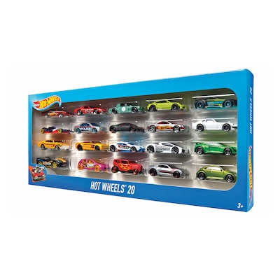 Truckloads of fun with 20 Hot Wheels vehicles! Reward your child—or your inner child—with Hot Wheels cars! This pack is truckloads of fun with 20 Hot Wheels vehicles included. Collectors and car enthusiasts admire these amazing 1:64 scale vehicles with fondness and reverence. Kids love them to play with their track sets or to enjoy push around play. These cars feature classic decos and hot designs. Open window packaging displays the entire set so you can see the variety of cars you’re getting. With 20 cars, it’s 20 times the fun! Jump start your collection today! Ages 3 and older.