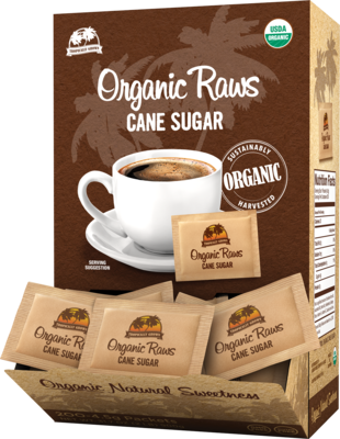 Sweeten hot beverages with these Tropically Grown Organic Raws cane-sugar packets.