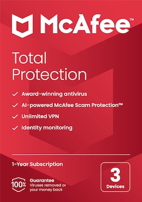 - McAfee Total Protection is basic online protection with award-winning antivirus, AI-powered Text Scam Detector, Secure VPN and identity monitoring.