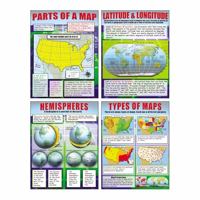 Help your students understand the world of map skills with these posters that teach them about parts of a map, types of maps, latitude and longitude, and hemispheres.