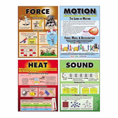 These colorful posters clearly illustrate and explain the most important aspects of four important physical science concepts: force, motion, sound, and heat. Package includes 4 posters, 4 reproducible activity sheets, and a helpful teachers guide.