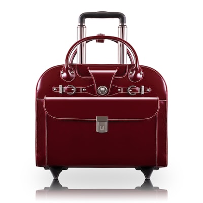 McKlein Edgebrook L Series Leather Briefcase, Laptop Compatible, Rolling, Red (96316)