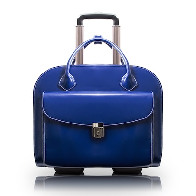 McKlein Granville L Series Leather Briefcase, Laptop Compatible, Rolling, Navy (96147A)