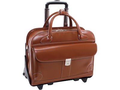 McKlein Lakewood Leather Briefcase, Laptop Compatible, Rolling, TSA Checkpoint Friendly, Brown (96614)