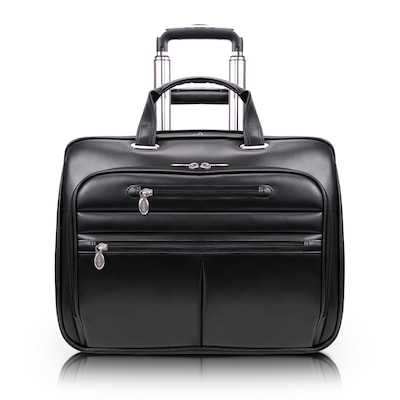 McKlein Limited Edition Laptop Rolling Briefcase, Black Leather (80505C)